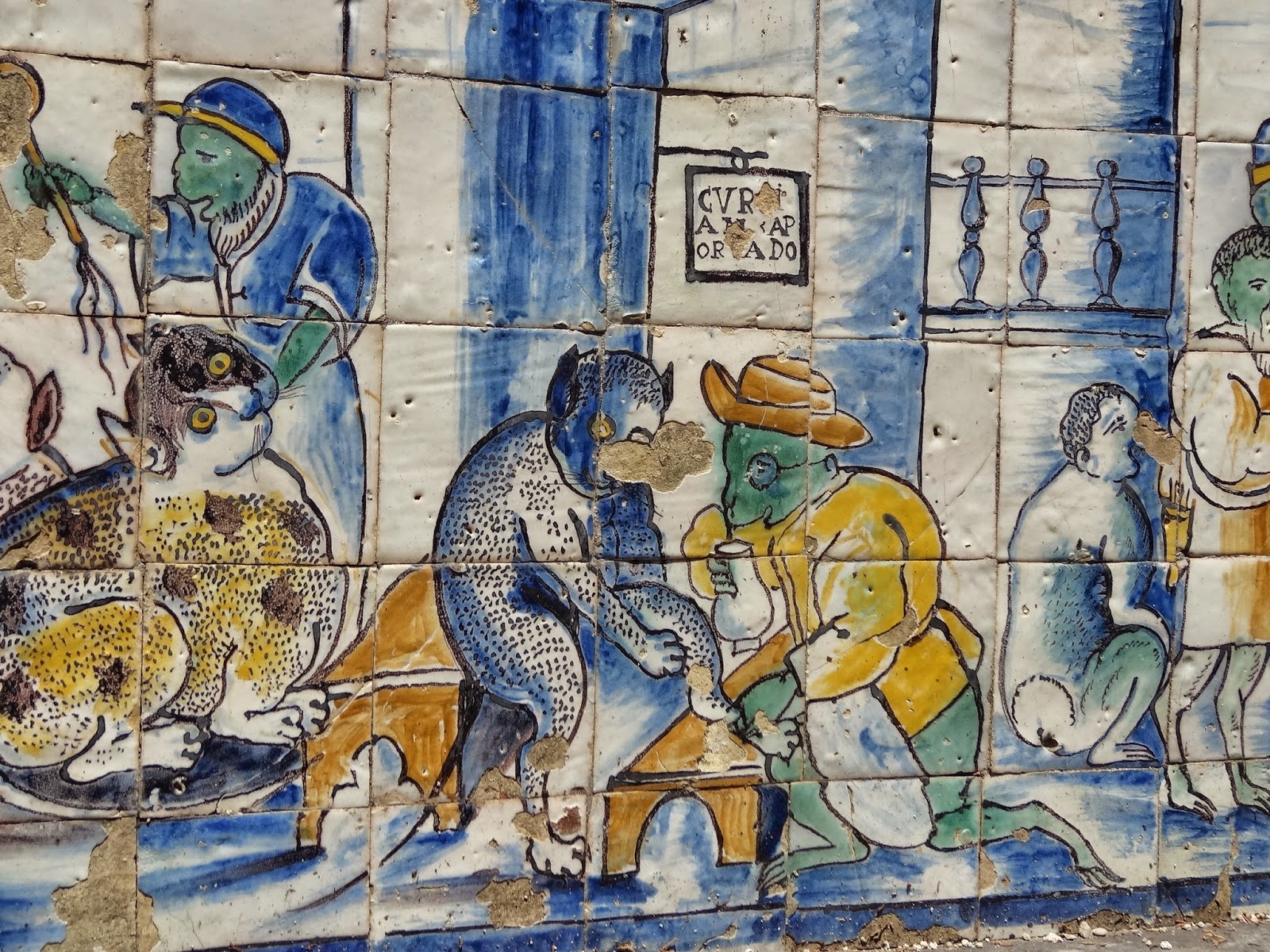 Azulejos no exterior do piso térreo do Palácio: